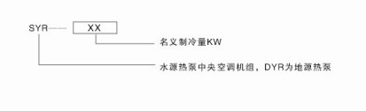 水/地源熱泵中央空調(diào)適用于既有制冷需求又有供暖或供熱需求的一切建筑物。如辦公、住宅樓和酒店、賓館、商場(chǎng)等,也可用于回收低溫位的廢水余熱。四、工程用水源熱泵機(jī)組型號(hào)代號(hào)