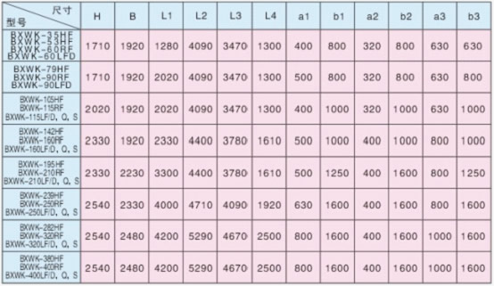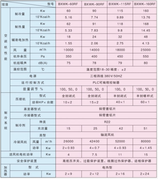 6.型號命名方法:例如BXWK-60LFD,其中:BXWK-屋頂空調(diào),60-制冷量,L-冷風(fēng)型(R為熱泵型,H為恒溫恒濕型),F(xiàn)-風(fēng)冷,D-電加熱(Q為蒸汽加熱,S為熱水加熱)。