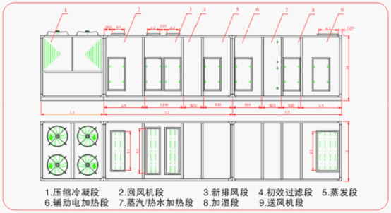 如條件允許,在壓縮冷凝段與處理送風(fēng)段之間拉開600mm左右,則更有利于制冷管道施工。