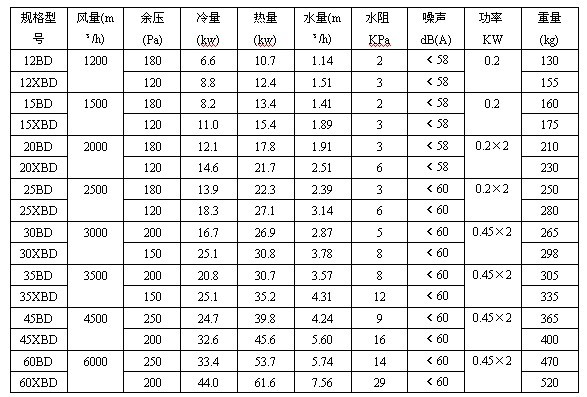 回風(fēng)工況:供冷進(jìn)風(fēng)干球溫度27℃,進(jìn)風(fēng)濕球溫度19.5℃,冷水進(jìn)口溫度7℃;供熱進(jìn)風(fēng)干球溫度21℃,熱水進(jìn)口溫度60℃