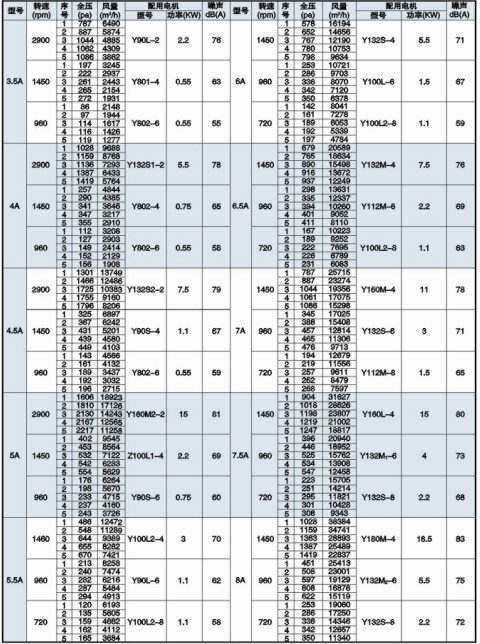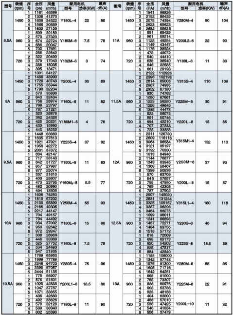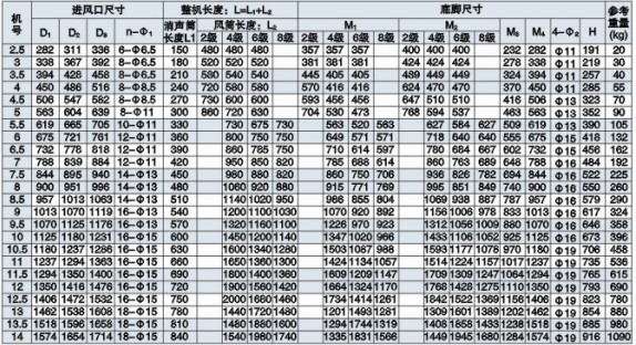 五、高效低噪混流式高溫排煙風(fēng)機(jī)尺寸表