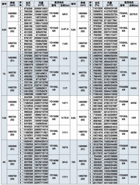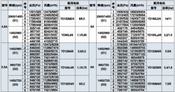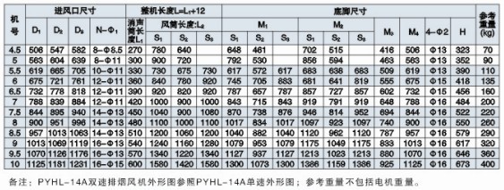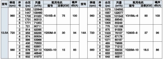 五、PYHL-14A雙速高效低噪混流式高溫排煙風(fēng)機(jī)性能表