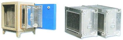 | JYL系列油煙凈化器為二級式靜電吸附型,用來去除細(xì)微粒徑的碳?xì)浠衔锖推渌諝庵械碾s粒。它的二級式是指電離段與收集段,每個電離段由一系列鎢鋼線組成,安裝在一系列接地板中間,并通過高壓直流電。大氣中的微粒在通過電離器的強力靜電場時,被電離并帶有正或負(fù)電荷。每個收集段由很多數(shù)量的平行板組成,通以高壓直流電 (極性與電離器一致,但電壓減半)以形成電場,帶電微粒被接地板吸引的同時也受到帶電板的驅(qū)趕。因此,當(dāng)氣流中含有帶電微粒時,可以被高效去除。 | ||